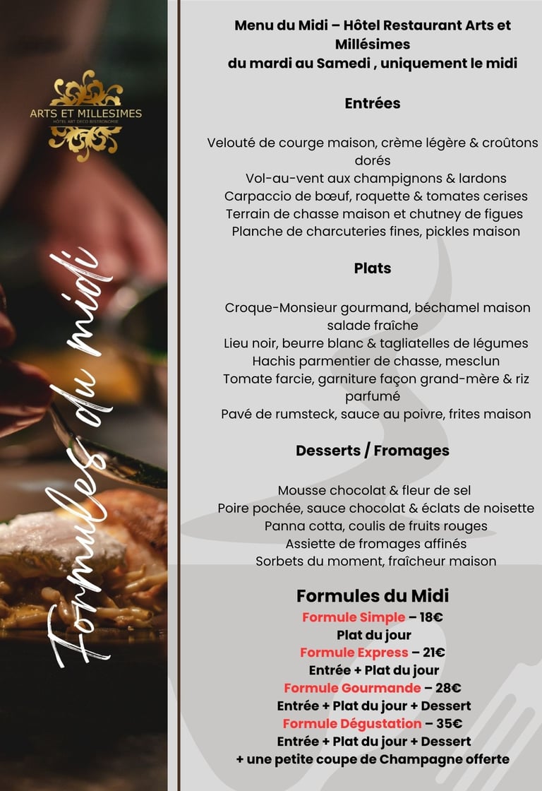 Dans un cadre élégant et chaleureux, Arts & Millésimes invite chaque convive à savourer un moment d’authenticité, accompagné d’une belle sélection de vins français et champagne .