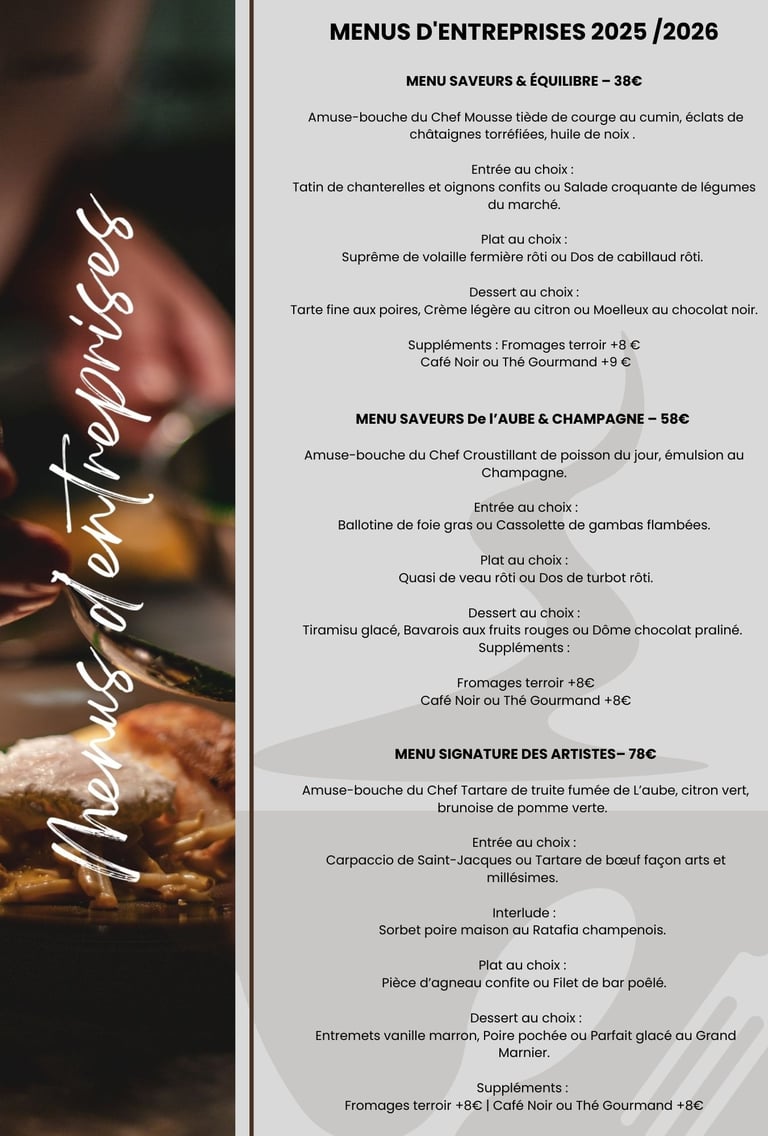 • Menu Saveurs de l’Aube & Champagne – 58€